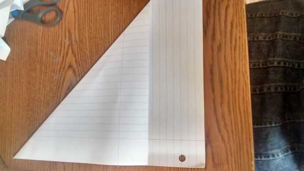 Funcionará cualquier papel con las medidas 10 × 8. Que suele ser papel de impresora o libro de nota. Tomar la esquina superior derecha y doblar a la izquierda hasta que la parte que era la parte superior es paralela a la orilla izquierda.