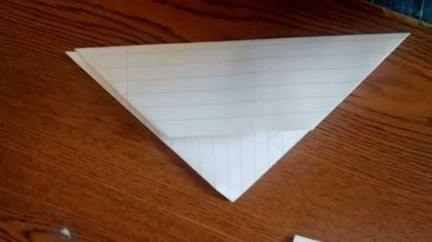 Ahora toma las esquinas inferiores y doblarlas hasta cumplir con la parte inferior del triángulo. Entonces esta doble y gire la punta del triángulo hacia ti.