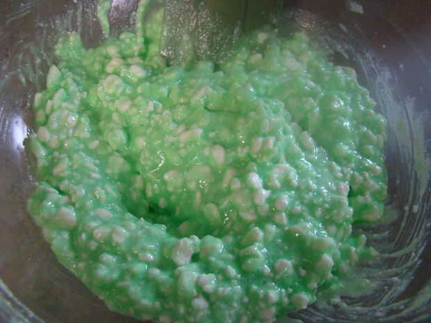 Cómo hacer gelatina de verde y ensalada de Queso Cottage (3 / 5 paso)