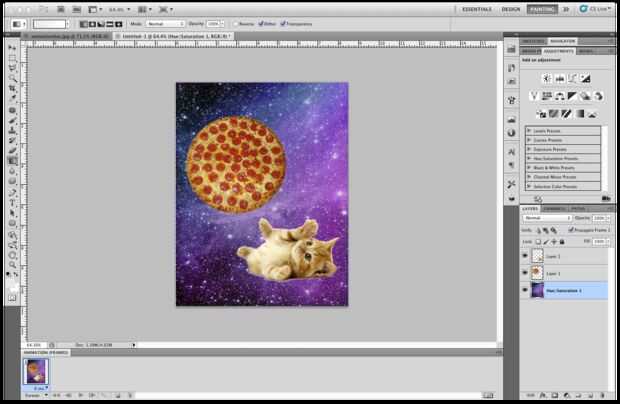Con la magia de photoshop adicional, he podido hacer otra capa de gato con su brazo en una posición diferente. Lo hice por duplicar la capa del gato (comando + J) y entonces la deformación con las herramientas de transformación (comando + T > click derecho > warp)