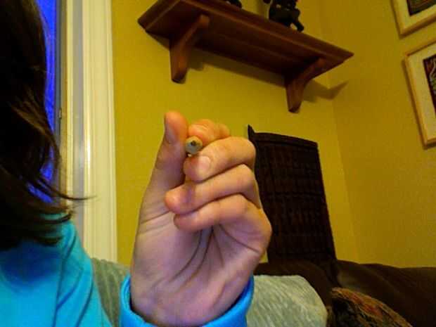 Ahora utilizar ese mismo retroceso lento, pero como el lápiz se acerca a esa brecha apriete su dedo índice y pulgar juntos. Si se hace correctamente, ahora debe ser el lápiz en la mano y en la posición de escritura normal. (ver foto).