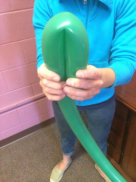 Doblar la parte superior del balón con dos manos (serán las orejas).
