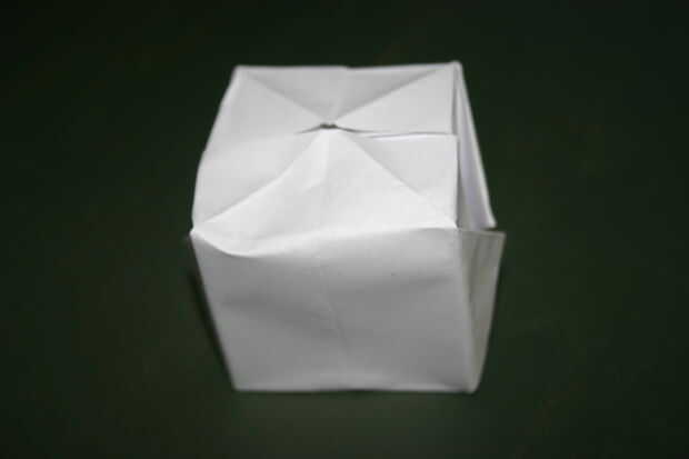para hacerla se necesita una hoja de papel cuadrada. Para hacerlo siga las fotoscuadro 1:fold la hoja hacia la izquierdacuadro 2:fold el papel de exese hastaimagen 3: cortePaso 1: La elaboración Doble en la mitad un ND REMETER la esquinaPaso 2: Doble