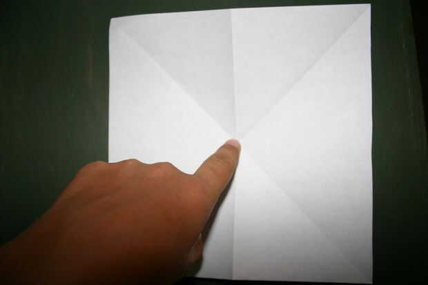 empuje hacia abajo en el centro de la Plaza y el papel debe doblar hacia adentro. Colapso por lo que el papel forma un triángulo