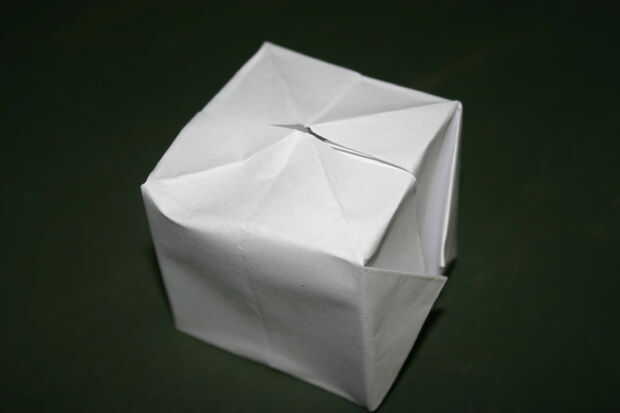 Ahora tienes un globo en forma de cubo. puede rellenar con agua o guardarlo. Ya que es papel absorberá agua y haz puré para tiro rápido.