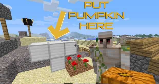 Que el golem de hierro que se necesita para colocar los 4 bloques de hierro en forma de "T" forma y luego colocar la calabaza en la parte superior para activarlo. Debe colocar la última calabaza en orden para que funcione.