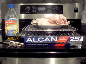 Tendrá crudo cerdo oídos, que usted puede encontrar fácilmente en cualquier mercado de la comida asiática, aceite de oliva extra virgen, tijeras de cocina, un cepillo, papel de aluminio y un horno la cacerola con una rejilla de alambre.