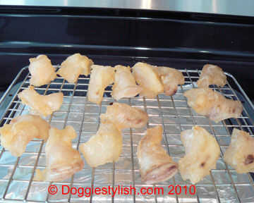 Coloque el recipiente en el estante medio del horno y dejar que los tendones se sequen durante unas 2 horas. Los tendones se reducirán en aproximadamente un 50% con el proceso de secado