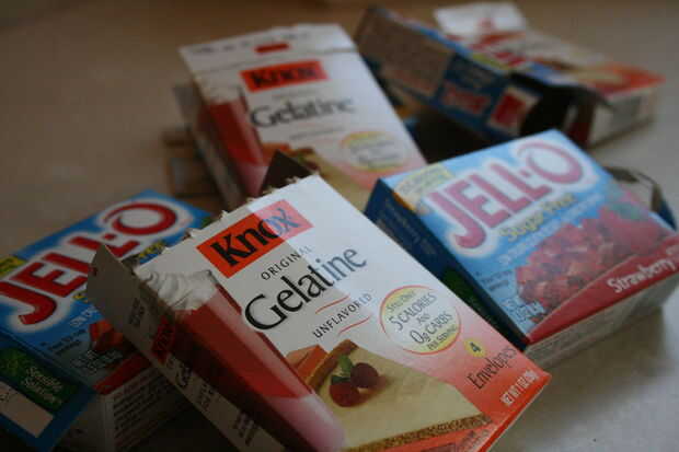 Primero probé 1 caja de gelatina de 7 paquetes de gelatina, que es igual a 8 piezas gelatiny cosas. El sabor era débil. Así que reemplacé un itemproduct de gelatina sin sabor con un producto con sabor para que sea un una proporción de 2-6 sin sabor sabor.