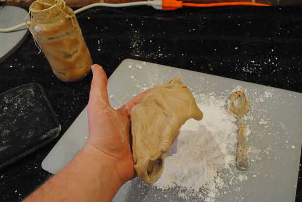 Amasar la encía alrededor hasta que se convierte en agradable un flojo como chicloso, si se pega a las manos demasiado agregar más azúcar.