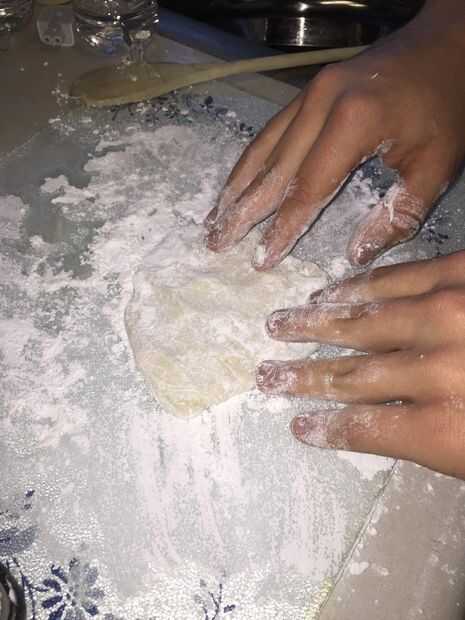 Amasa al igual que haría con masa de pan y luego dividir la goma en dos partes sobre la mesa. Añadir el contenido de uno de los paquetes de sabor en cada parte.