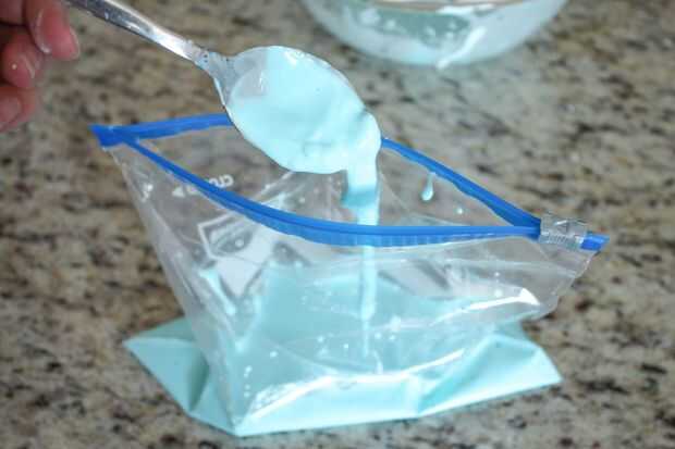 Para mantener su goop en perfectas condiciones es hora de guardarlo en su bolsa de sip. Usar la cuchara para raspar los lados del tazón y vierta en la bolsa de ziplock y fíjela el sello.