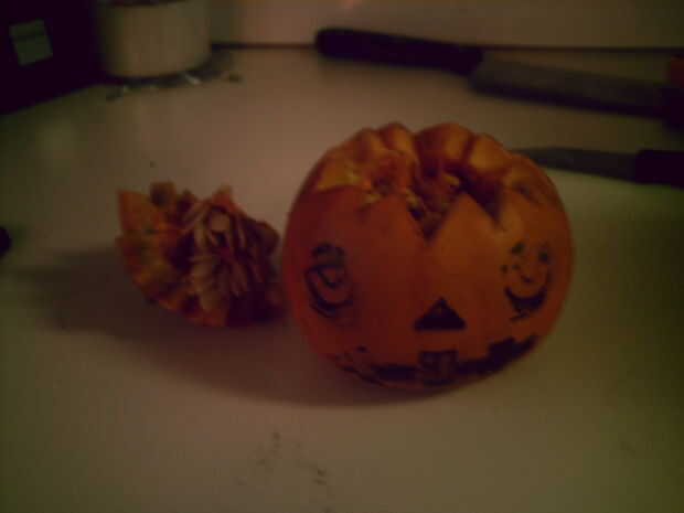 Corte la parte superior y mirar las maravillas que son las semillas de calabaza y calabaza venas...