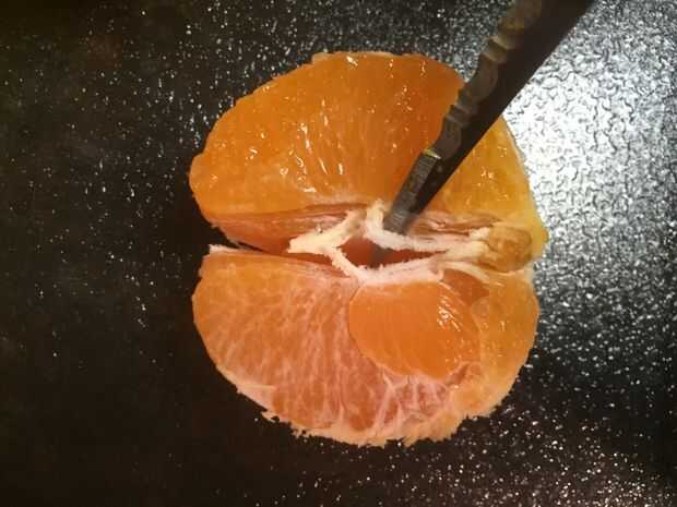¿La médula? Sí, así es exactamente. Puede quitarse el centro fibroso, blanco, símil que viene del ombligo de la naranja.