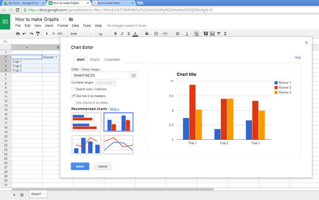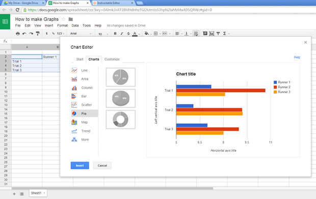Haga clic en "Tabla" (al lado de "Inicio"). Ahora verás un montón de tipos de gráfico. Elegir el tipo de gráfico que desea utilizar.