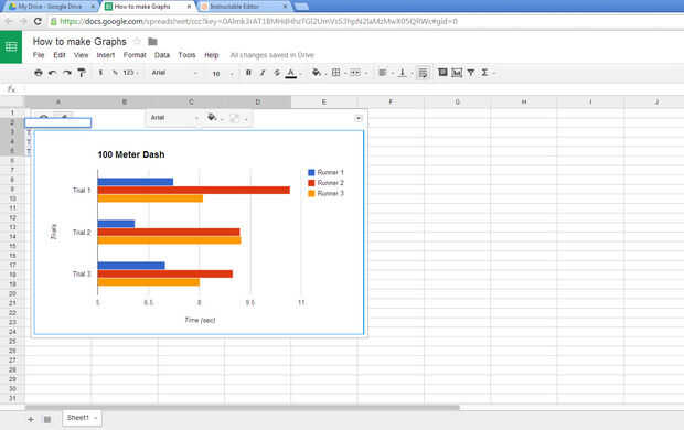 Haga clic en "Personalizar". Ahora puede dar la tabla de un título, etiqueta del eje y ajustar los colores. El gráfico cumple con su imagen, haga clic en insert y la tabla estará en la hoja de cálculo.