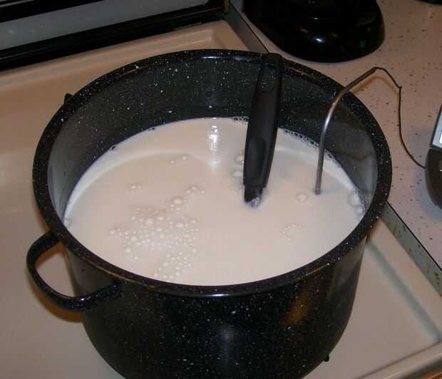 Asegúrese de que la leche es alrededor de 50 grados cuando vierta el ácido cítrico