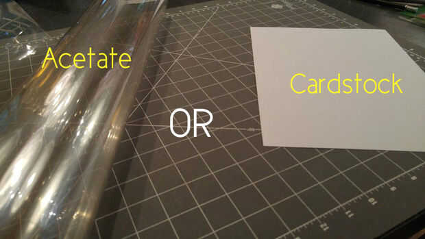 Para el cuerpo de la plantilla sí mismo, usted necesitará elegir entre cualquier cartulina (papel valorado entre 50 y 110 libras; más delgado que el cartón pero más grueso que el papel de la impresora), o acetato (láminas plásticas flexibles que son un poco más grueso que la cartulina). Plantillas de acetato son más durables, pero menos indulgente durante el corte y son más difíciles de cortar.