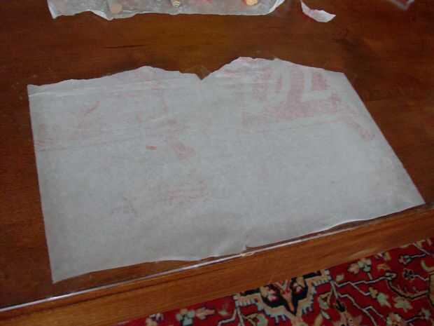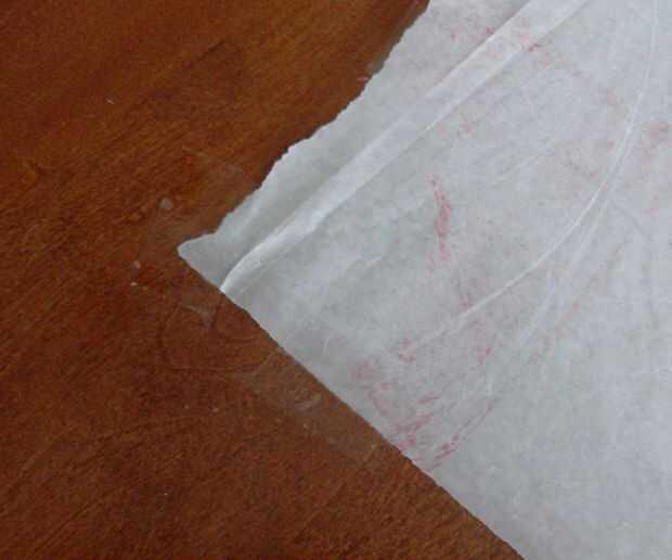 Ahora, la cinta por su papel de cera, asegurándose de que consigues todos los rincones tirados cómodamente por lo que no arruga el papel en el medio. Se mueven las manos en el papel después de grabar sólo para asegurarse de que es seguro.