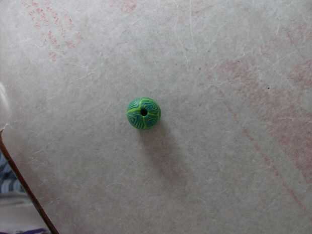 En el balanceo del talón alrededor para aplanar las rebanadas, la arcilla puede han cubierto parcialmente para arriba el agujero de la perla. Esto es normal y fácil de arreglar.