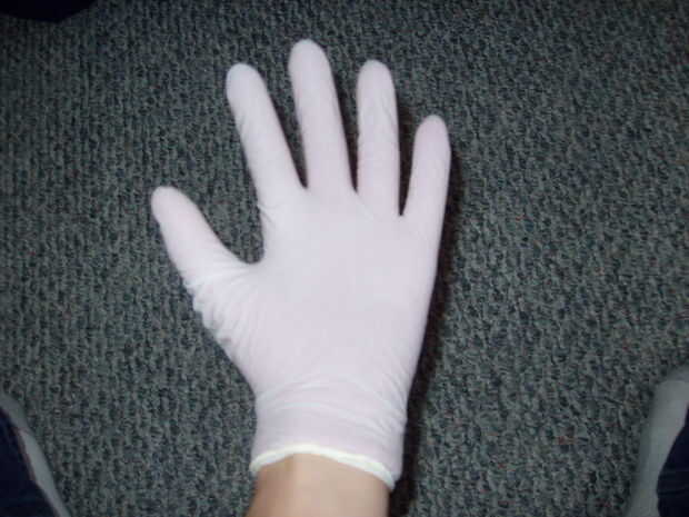 Poner guantes de laboratorio sobre guante de invierno fina.