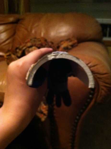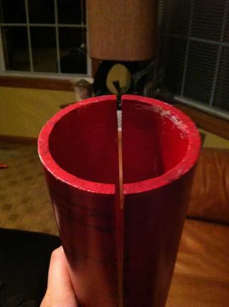 a continuación, cortar el PVC verticalmente (ver fotos) entonces cuando se corta en dos la mitad (ver fotos más) entonces usted está todo listo para el siguiente paso!