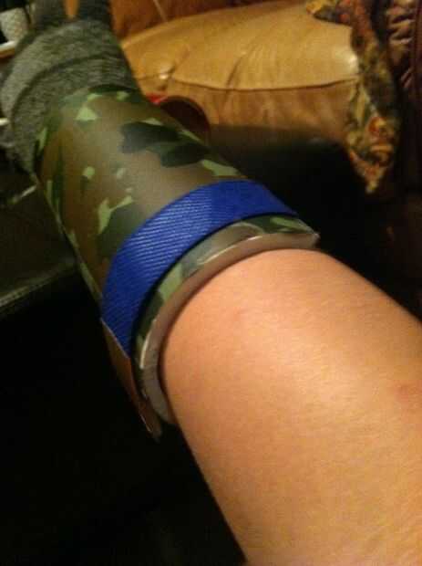 Ahora pegamento caliente un guante en como tal (ver fotos) (también, guantes de jardinería antiguas funcionan mejor) luego después de eso, encontrar una manera de mantener la espalda como así (ver cuadros otra vez) y para sujetar el sólo uso de cinta adhesiva y algunas velcrow.
