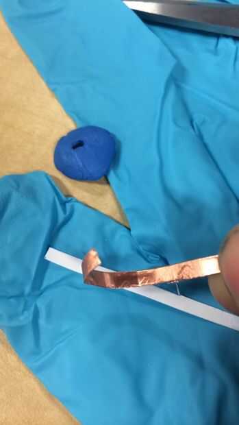 Cortar la cinta de cobre y hágale un agujero a través de su sugru. Luego, tomar la blanca cinta de cobre.
