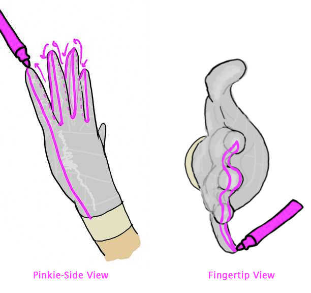en este instructable te mostraré cómo hacer un par de guantes, estos guantes se pueden utilizar para solo sobre cualquier cosa, también pueden ser utilizados como trazadores de líneas del guante!Se necesita:Spandex (o algún otro material elástico)Mar