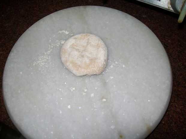 Polvo de las porciones de masa de harina, aplanarla y rodar en un círculo de diámetro de 3 pulgadas. Coloque el guisante relleno en medio lado del círculo y cierre el paratha doblando con la otra mitad. Sí tan simple como eso. Vamos a tener una forma oval del semi círculo.