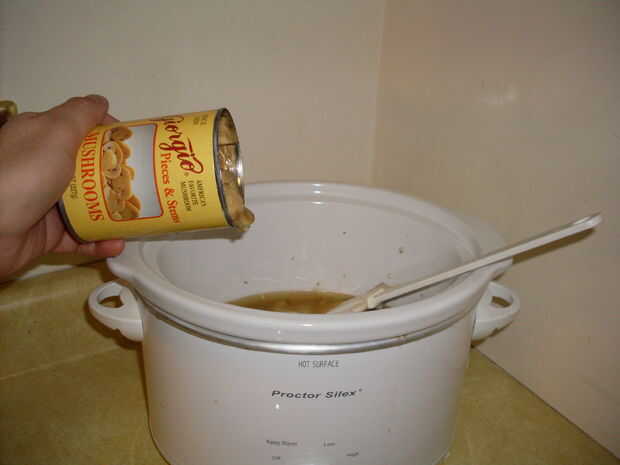 Siguiente paso es añadir la lata de tallos de champiñones y piezas.