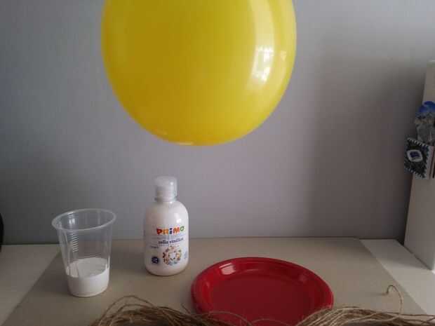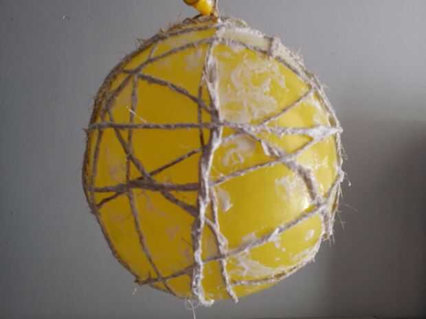 Colgar el globo y empezar wraping él alrededor con la guita. Deje que se seque durante la noche.