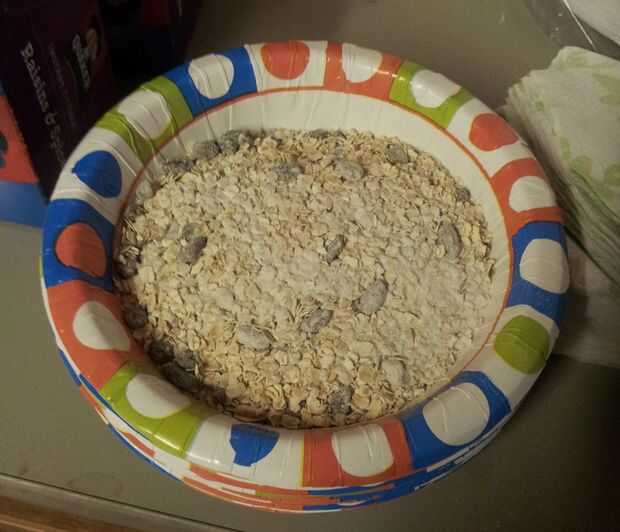 Parece que ese volumen X de harina de avena más Y volumen de agua es igual a aproximadamente X volumen de harina de avena más húmedo. Basado libremente en esta teoría, si se ajusta a su avena en el recipiente con suficiente espacio para revolver cuidadosamente, su avena continuará caber en el recipiente después de agregar agua. Tenga en cuenta que este cálculo se basa en la utilización de la máquina de café Senseo como su aplicador de agua, no una manguera de jardín.