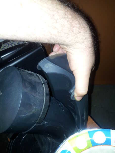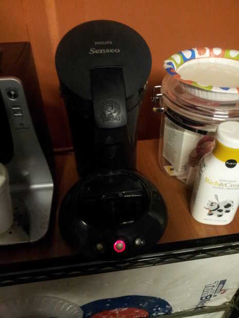 Una vez que el agua en la cafetera Senseo, presione el botón central. Usted debe oír un revuelo y apareciendo como el steampunk magiks comenzar. Cuando las cosas son vapor, el botón será el anillo rojo de la muerte. Supongo que debería probablemente morir si desarma cosas en este momento. No.