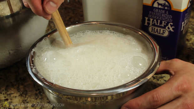 ¡Ten cuidado! Si se agrega demasiado hielo seco a la vez, la mezcla de helado burbuja sobre y derramará todo su contador. Esto hace un lío muy grande, así que evite la molestia mediante la adición de hielo seco con moderación, como lo necesita la mezcla.