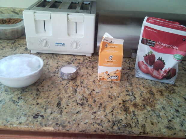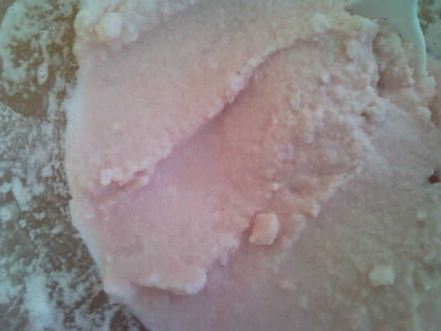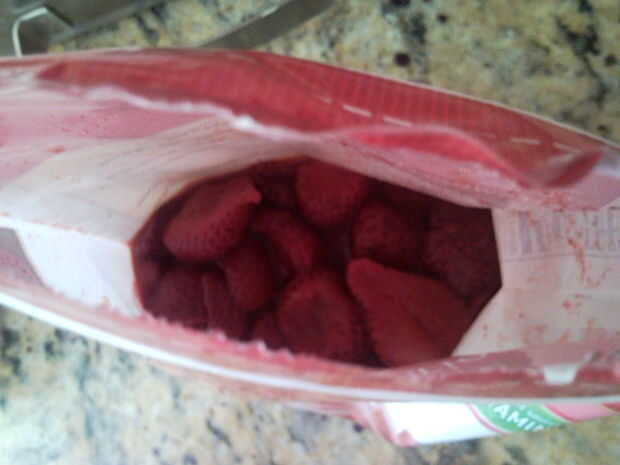 Tenemos, sin ninguna razón particular, algunas frutillas congeladas en blanco. El jugo allí es ideal para la fabricación de helado. Echar el azúcar, media taza de jugo de fresas, alguna crema, y (opcional) un poco de vannilla extracto. mezclar bien, asegúrese de deshacerse de los grumos y poner en el congelador por media hora (para espesar le) sirve 1 tiene un bonito color rosa. Sabe gran!