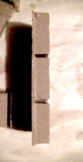 Lo que está viendo aquí es el borde del azulejo después de los cortes. Se puede ver que la hoja de corta a través la mayor parte de las baldosas, pero dejó sólo un poco (a 1/16 o así) para mantener los azulejos juntos. Esta profundidad es sólo de derecha a un descanso fácil y aún crear un bonito borde irregular.