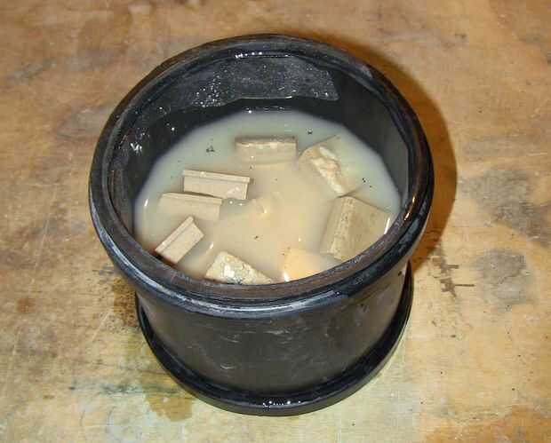Cargar un cañón vaso sobre 5/8ths lo completo de las piezas de mosaico. Poner en el sobre una 1/4 taza de grano grueso y llenar el barril con agua hasta el nivel de las piezas. Añadir alrededor de un 1/8 de una taza de prepolish a brillar un poco. He caído los azulejos con sólo grano grueso y grano grueso y algunas prepolish y salen brillantes con ambos. No necesitará usar ambos, pero creo que les hace parecer más agradable.
