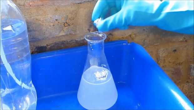 - Lentamente agregar el hidróxido de sodio hasta que se disuelva