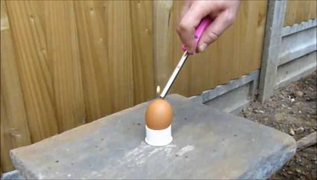- Utilizando una encendedor de barbacoa rápidamente luz el agujero superior del huevo