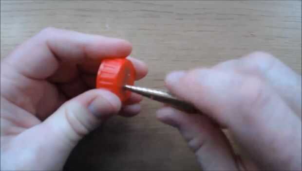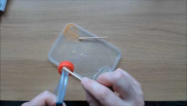 • Empuje la paja de la soda de vidrio a través del orificio del tapón de goma
