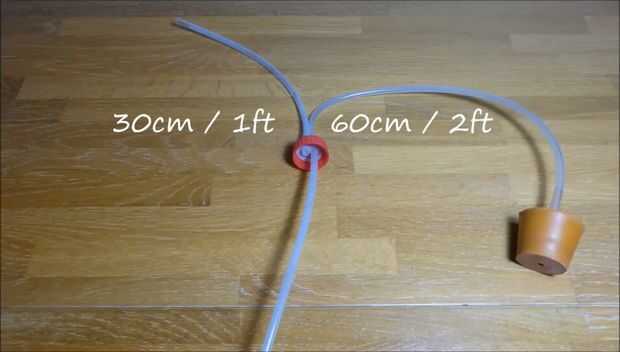 • La tubería de 60cm / 2ft debe pasar a través de la tapa y sólo llegar a la parte inferior de la botella de soda