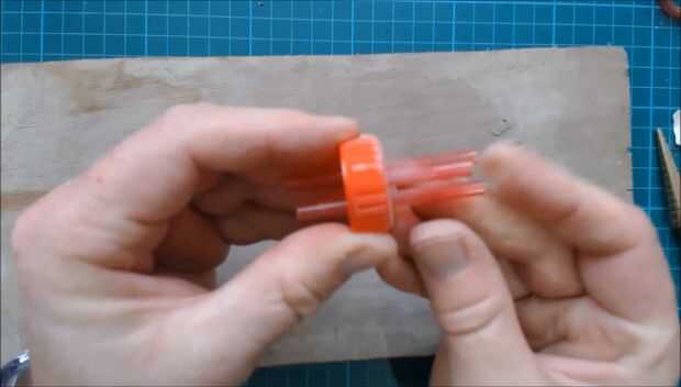 se necesita:1 tubo de pvc de 2"1 2" pvc tapa1 2" pvc terminación final con hilos y el tornillo de thingey final.1 nylon alrededor de 1/4 de la pipa (que es lo que usé)Tubo pegamentoUn frasco o vaso de aguaUna pinza pequeñaJabón (opcional)Bi