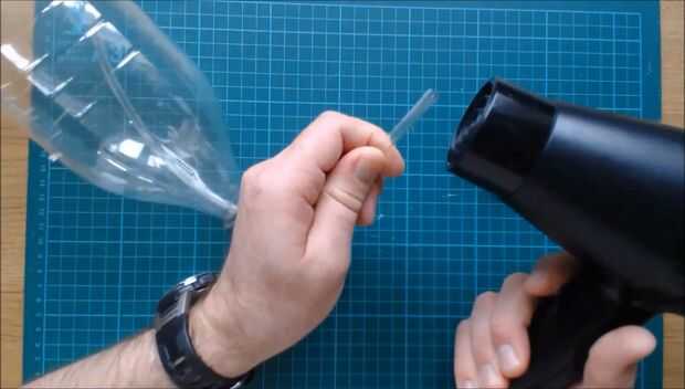 • Empuje el otro extremo del tubo a la base de la botella de expansión de gas (2 º botella de soda)