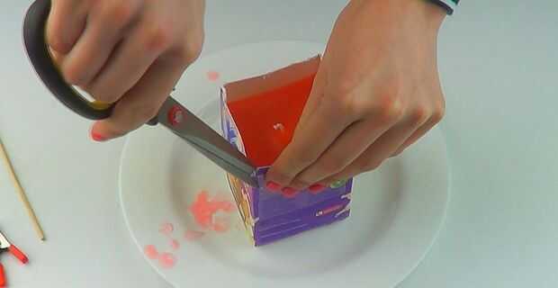 Después rasgúela a la caja de la vela. Dependiendo de cómo el hielo derretido en el cartón de leche, es posible que algunas piezas que faltan de la vela. Esto agrega carácter!