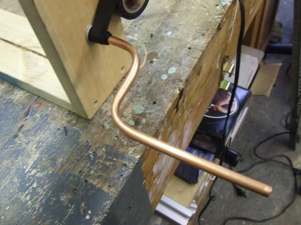5: usar un doblador de tubo doblado una forma de 'Z' en la tubería para crear la manivela. Las medidas no son críticas pero he dejado suficiente espacio para permitir que la máquina se pondrá en un banco y todavía ser operado.