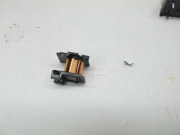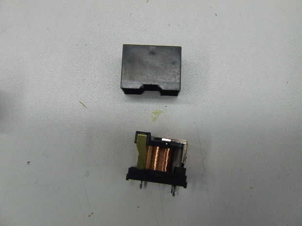 En la parte superior del relé que es aleta de metal y formado este cap fue apalancar usando mis dedos para revelar el núcleo central de la bobina del resorte.
