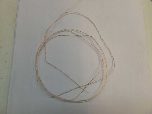 Para ser conductor la capa debe ser extirpado y esto se puede hacer calentando con un soldador en el punto de conexión deseada A poco de la soldadura de bola en la plancha, ayuda mucho. Esta capa es de nylon y apesta como quemado electrónica cuando derretido apagado. Por esta razón se utiliza hilo de algodón, el hilo de poli quemará lejos y debilitan considerablemente la estructura.