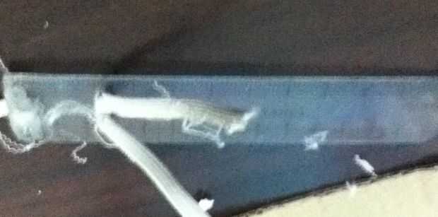 Ahora poner 15 cm elástico por los agujeros de ambos como ir de un agujero a otro, por lo que debe tener una pieza que sobresale de cada agujero, debe ser igual, ahora atar un no en la parte superior como se muestra en la imagen.