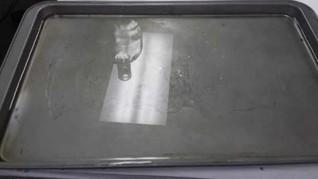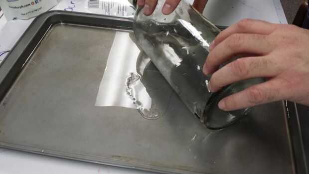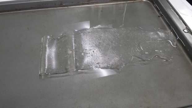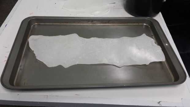 Puedes ver en las dos primeras fotos la botella rodar el Instamorph hacia fuera en como agradable y aun una hoja como sea posible. Trate de no ejercer una presión extra en un extremo o el otro ya que hará que un área delgado en el plástico. Tenga en cuenta que la bandeja se llena con agua caliente en la primera foto para mantener el plástico flexible más tiempo y permitir que de forma más fácil.